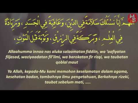 Ya Allah, sesungguhnya kami memohon kepada-Mu keselamatan ketika beragama, kesehatan badan, limpahan ilmu, keberkahan rezeki,